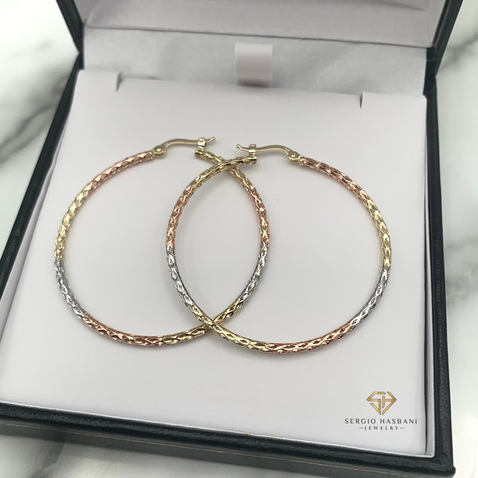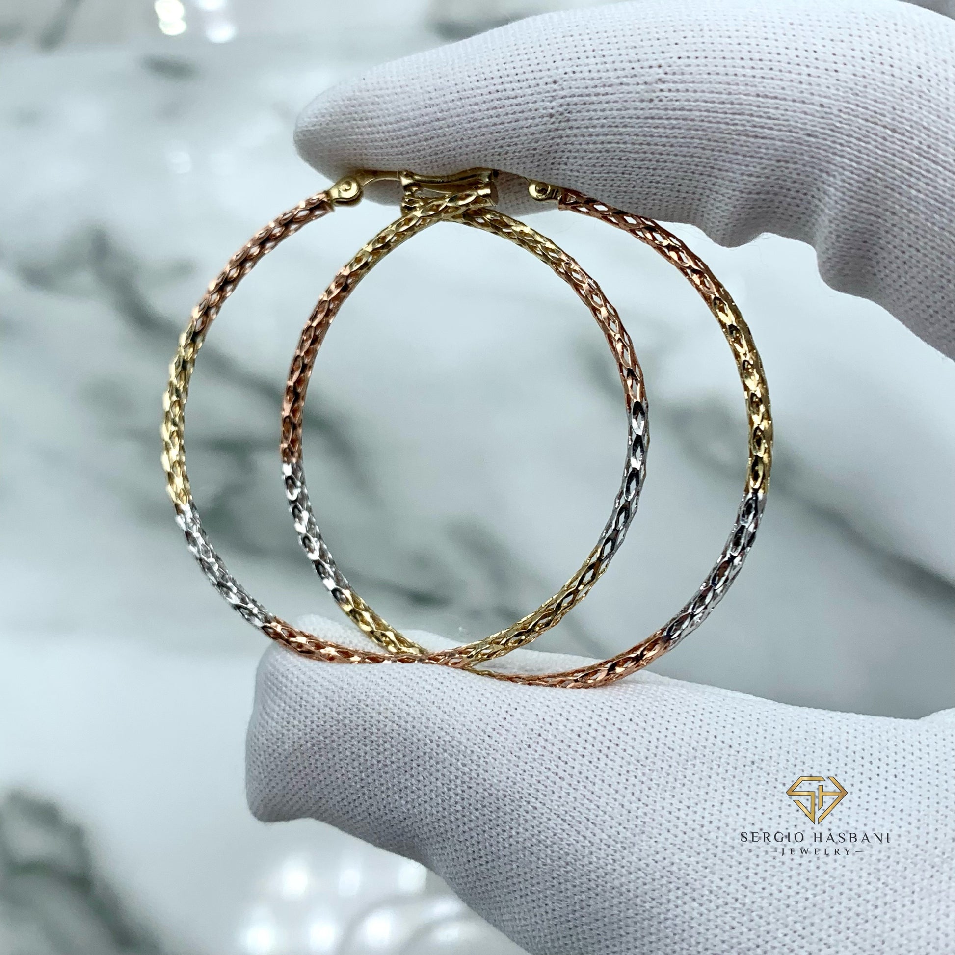 10K 2MM 3tone Laser Cut Hoop Earrings